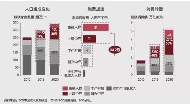 众所周知,中国经济进入大调整期,想要靠消费拉动新一轮经济增长,就必须关注当下正在形成的稳定、有实力和潜力的新型消费群体——中产阶层:他们具有良好的教育背景;主要分布于国内的一二线城市;他们的消费行为更精明和成熟,更愿意为产品品质支付溢价,并且非生活必需品的消费占比越来越大。