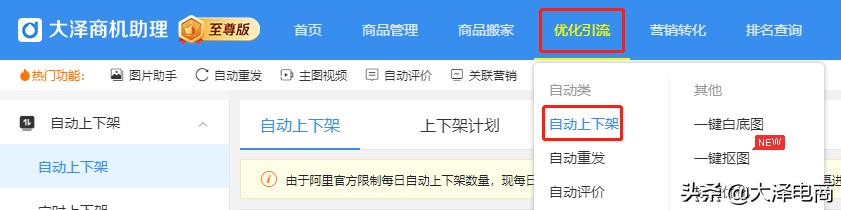 打开“商机助理”=>“优化引流”=>自动上下架