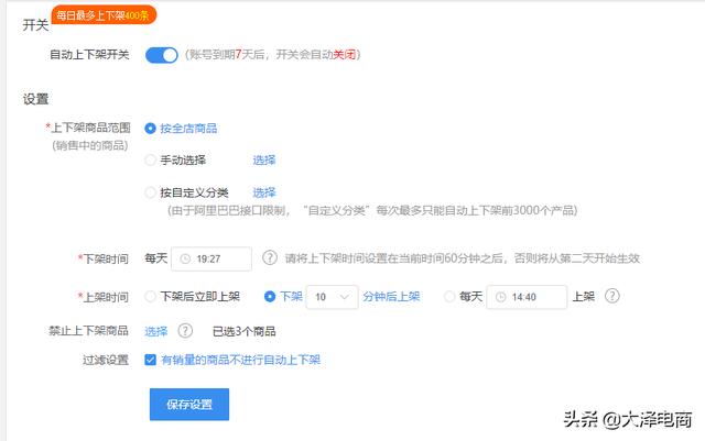 ① 自定义分类每次最多只能自动上下架前3000个产品