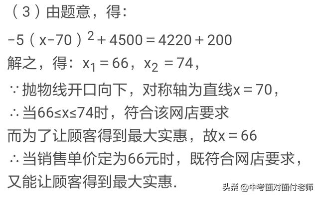 Ⅲ、在第一问基础上,然后就是涨价和降价这两种状态下的利润最大值问题。涨价和降价会引起数量的变化,所以利润的函数表达式会有所不同,这个不同主要体现在销售数量与售价上,所以同学们只需要抓住涨价和降价引起的数量变化关系,就可以很容易解方程求解。