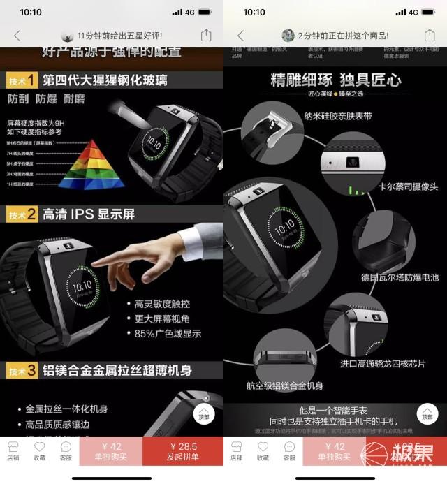 按照惯例,任何呼声高的电子产品都难逃与华强北和拼多多的联手“摧残”,不光能把价格打下来,功能还能被玩出花……果然,前两天极果君就从拼多多上发现了一个堪称逆天的智能表,才卖28块5毛,四舍五入等于不要钱!