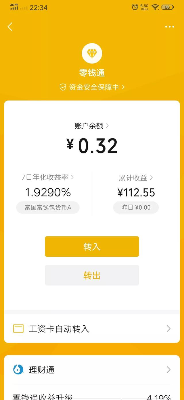 真希望自己的微信的余额宝存款20万元,每天躺着都能收入10元4毛钱。