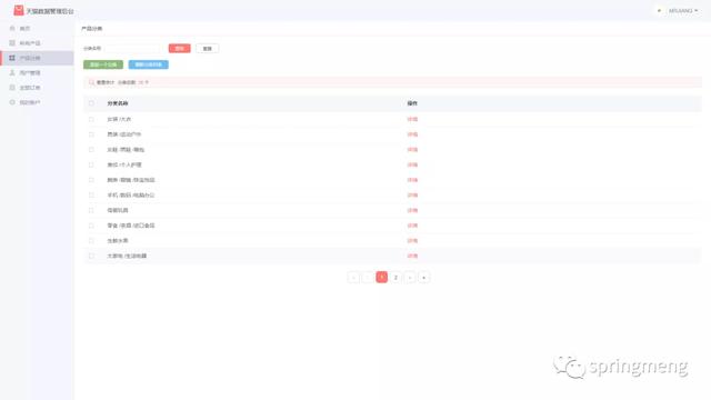 开源项目:天猫商城介绍迷你天猫商城是一个基于Spring Boot的综合性B2C电商平台,需求设计主要参考天猫商城的购物流程:用户从注册开始,到完成登录,浏览商品,加入购物车,进行下单,确认收货,评价等一系列操作。作为迷你天猫商城的核心组成部分之一,天猫数据管理后台包含商品管理,订单管理,类别管理,用户管理和交易额统计等模块,实现了对整个商城的一站式管理和维护。