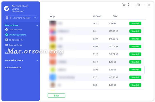 步骤 2。滚动查看 iPhone 上安装的所有应用程序。找到要卸载的未使用应用程序,然后单击卸载按钮。然后会弹出提示。您可以单击“确认”按钮卸载选定的应用程序。