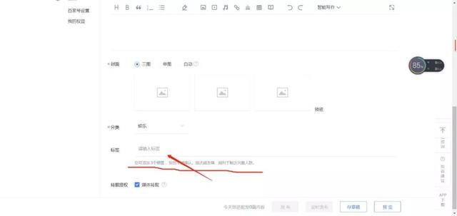 标签:就是关键词,文章设置了标签后,更容易被收录和曝光,从而提升阅读量,最终提高收益。