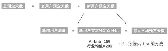 Airbnb是一家联系旅游人士和家有空房出租的房主的服务型网站,它可以为用户提供多样的住宿信息。所以他的北极星指标是总的预定天数,结合之前北极星指标构建的方法,我们确定了Airbnb的指标体系为: