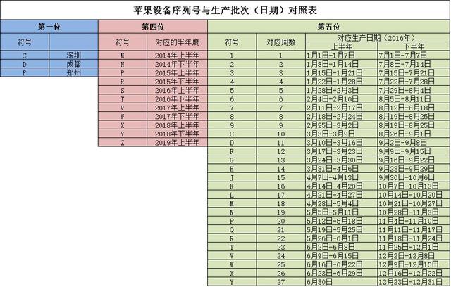 新老序列号的分界线为iPhone 12,据了解从这一代手机开始,序列号开始由原来的12位变更为10位。关于老版本的序列号,网上有大量的文章宣称可以查询到iPhone的产地,出厂日期等信息。比如开头的第一位代表着产地,其中C:深圳富士康、D:成都富士康、F:郑州富士康、G:上海和硕或者深圳富士康等。第四位代表生产年份用20个英文字表示(除去A、B、E、I、O、U),从2010年算起,每半年进一位,比如C代表2010年前半年,D代表2010年后半年。第四、五位代表生产周期用9个数字表示(除去0)和英文字母表示(除去A、B、E、I、O、U、S、Z),一共27个标识符,当数到9的时候接英文字母C,直到结束,每半年一个循环。例如VL代表2017年下半年底第7周生产。第六、七、八位为手机的唯一标识符。第九、十位表示手机型号,第十一、十二位代表手机颜色。容量等信息。DT7VLR99HFXW代表成都富士康2017年下半年生产的机型。