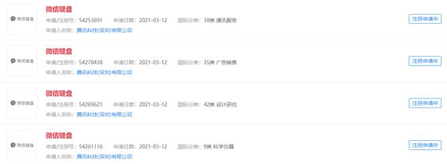在此之前,腾讯也申请过“微信键盘”这一商标。就此来看,微信或将推出自己的输入法的可能性不低。
