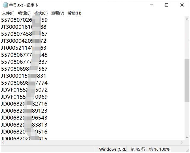首先,将要查询的快递单号都保存在同一个TXT文档之中