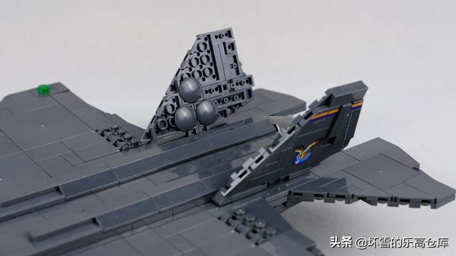 垂尾上同样设置了两块可以向内活动的舵面,水平尾翼则是完全的不可动;垂尾内侧的裸露面并没有光面零件遮蔽,背板直接暴露在外,多少是有些不够美观。