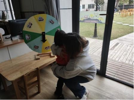 近日,东阳市第五实验上卢园区,小一班的小朋友进教室前,进行打招呼大转盘,可自由选择拥抱、击掌、碰臀和鞠躬的方式向老师打招呼,石依依早早地就来到幼儿园,在打招呼转盘里转到了比爱心,他用手比了两个爱心,睁大眼睛看着老师,老师看到后立马微笑着和他比爱心,让人觉得特别可爱。"老师老师我要和你击掌"卢奕杰说。小朋友们都很喜欢这样的方式入园,整个过程十分有爱~~~