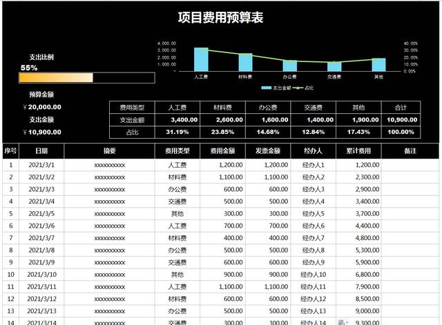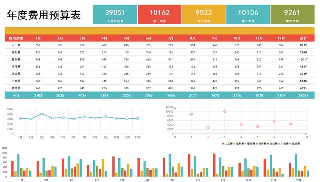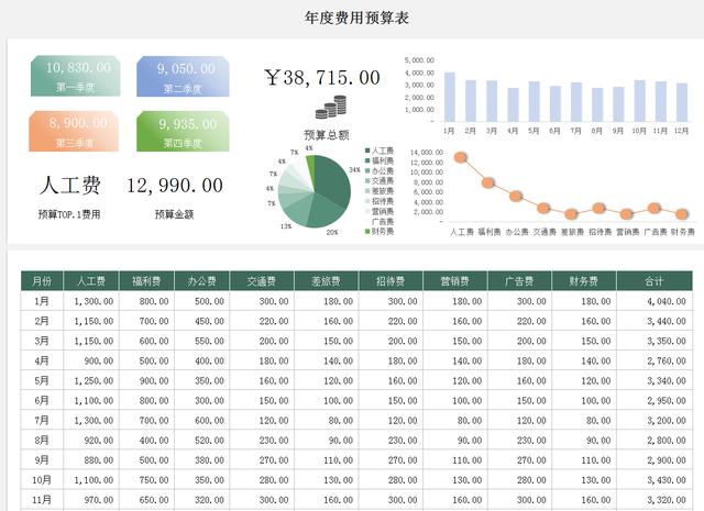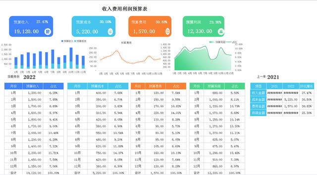 很多会计人员说,预算啊分析啊占据工作的一大部分,公司规模大,要通宵加班,其实财务费用预算真的一点不难,这套费用预算表,成本、收支、图表、数据分析都清晰明了,自动公式,输入数据就能自动生成了。