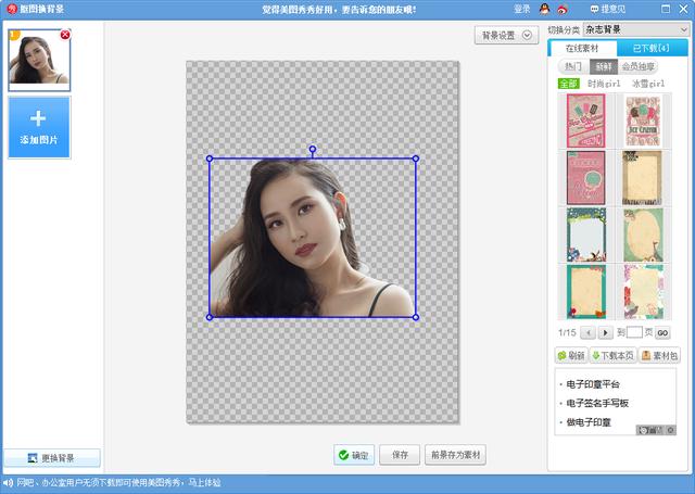 这里我们以自动抠图为例,只需要在所需保留的区域做划线标记,系统便会自动将其抠取下来,同时可以在软件上直接更换背景。