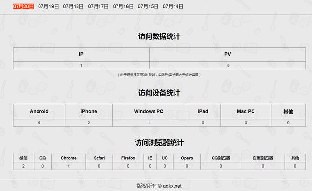 ③7天数据(访问人数、访问设备、访问浏览器)统计。