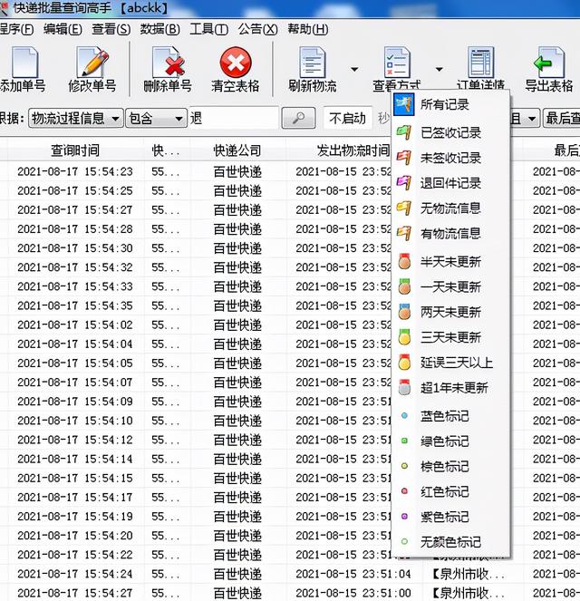 这里显示是都是已经签收单号,共有109单。大家 一起动动手试下这个神奇快递批量查询高手,一起来挖掘其他功能吧。