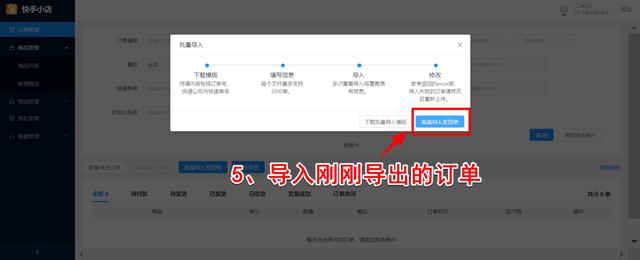 ⑤、导入刚刚导入的订单即可完成批量发货