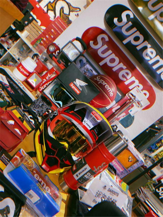 Superme是联名款大户,它真的和好多品牌出过联名款:rimowa(行李箱)、Ypl(燃脂裤)、b&o(音响)、奥利奥(饼干)……只有你想不到,没有它联名不到的款!联名的篮球价值20万就算了,我也是不敢想一块砖也要十几万!!!