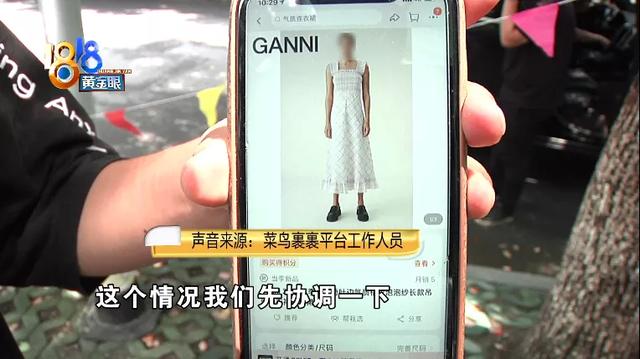 后来,菜鸟裹裹平台答复,他们给了两个方案,如果王女士要这条连衣裙,他们会清理干净并赔偿货款近一半的价格;如果王女士不要这条连衣裙,他们可以照价赔偿,王女士最终选择了第二个方案。
