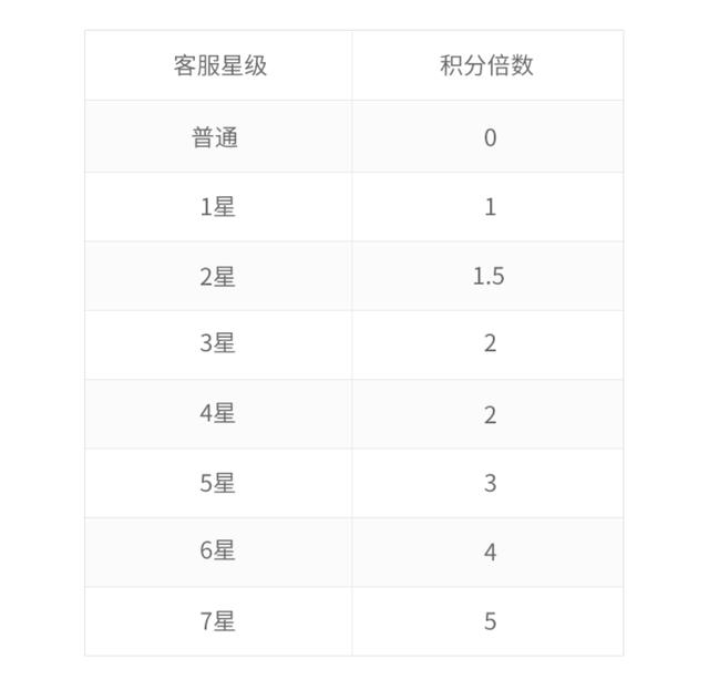 电信用户分为普通用户、1星、2星......7星,每个等级都对应一个积分倍数。