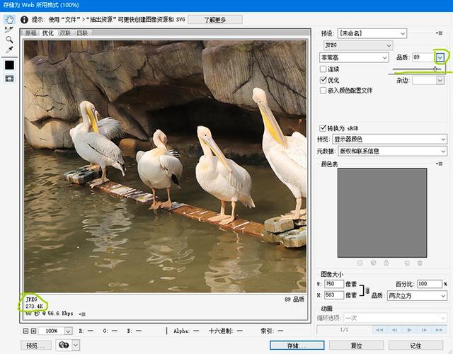 看左下和右上我圈出来的地方,一个是图片的大小,另一个是图片的品质。品质越低,图片清晰度越差,图片就越小,所占内存就越小。