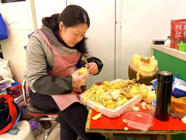 刘云说,前些年每年都会出一种卖得最火的水果,比如菠萝蜜有一年就卖得特别好,那时店里一天可以卖掉上百个,她一个人剥菠萝蜜完全忙不过来。但这两年,畅销品种分散了。