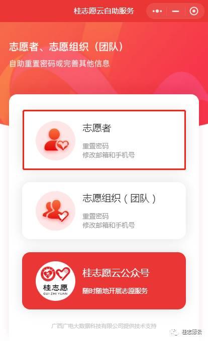 在“桂志愿云”小程序首页,点击“志愿者”。