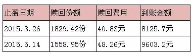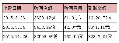如果你选择了全部赎回,那么在2015.1.1-2016.1.15之间会发生3次赎回操作,如下表: