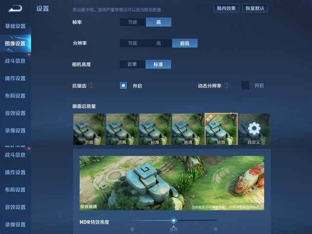 《王者荣耀》画面设置,支持高帧率