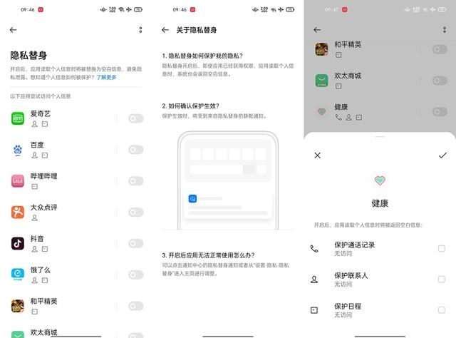 然后,为了进一步防止数据被利用,大家可以在“隐私替身”中单独设置各个APP,让它们在读取你的特定种类个人信息时,只能读到被掉包的空白信息,真正的个人信息则安然无恙。