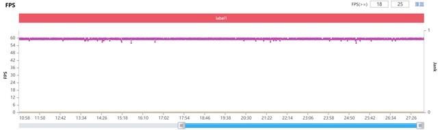 在测温环节,我们也采集了两段OPPO Reno6 Pro的游戏帧率数据: