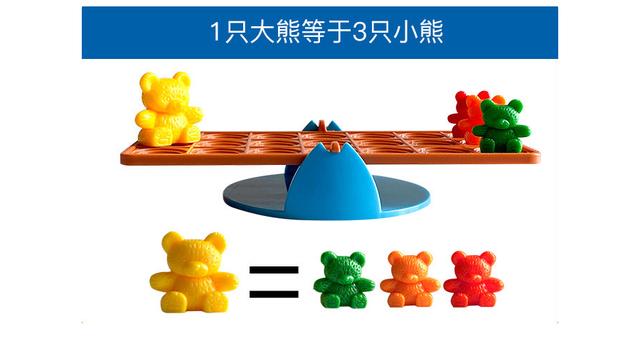有彩虹杯,可以配合小熊锻炼识色分类能力;有天平秤,可以培养孩子等量代换逻辑思维;有收纳盒,锻炼计数能力,培养良好习惯。