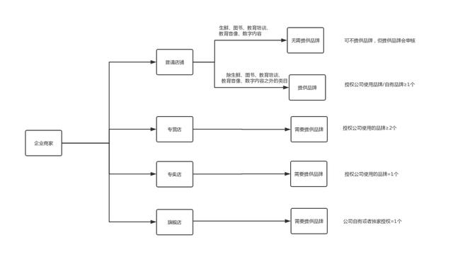 普通店:≧1个普通授权品牌,须提供持有或者授权的商标证,店铺命名不能出现专营店、专卖店、旗舰店等词;