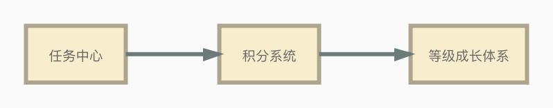 再往下说,产品方指定的用户特定行为由任务中心体系而定,用户获得的收益也与产品制定的奖励机制牢牢相关,而奖励机制又可细分为积分系统和等级成长体系,因此拆解后如下图:
