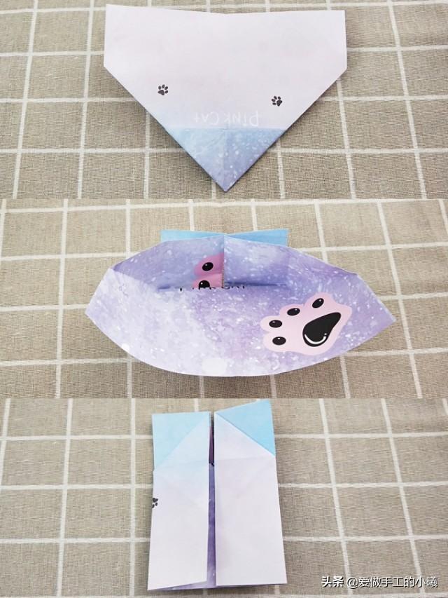 梯形部分按照一正一反折叠。中间部分向里折一下,这样看起来像翅膀。