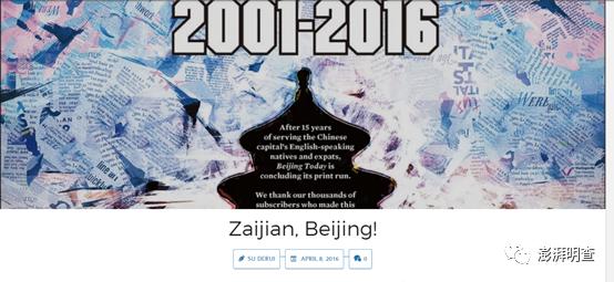 2016年4月21日,该网页上留存了一篇名为《再见,北京》的英文告别辞,写到“很伤心,我们要在《今日北京》说再见。在过去的774周里,我们的记者将中国首都和全国的生活编入了历史,能够服务这个城市的英语社群是我们的荣幸。”