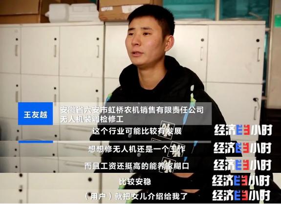 安徽六安,双胞胎兄弟王友越、王友飞经营的一家无人机维修点服务范围覆盖整个六安的七个区县。最近一两年,当地使用无人机的农户越来越多。农闲时节,他们每天最少也要修三四台无人机,而到农忙时,一天就得修三十多台,每月收入能达到两三万元。