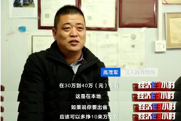 高茂军告诉记者,他每年操作飞机进行植保作业的面积,大约有5万亩左右。按照当地的行情,每亩地用无人机进行植保作业,他会收七八元的费用,一年下来,刨去各种成本,高茂军的收入少说也有30来万元。