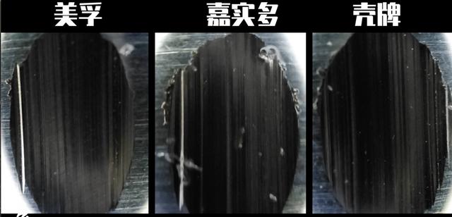 这里我就直接把测试的3颗砝码,直接放在一起对比摩擦痕迹,而且都用显微镜头放大来看。