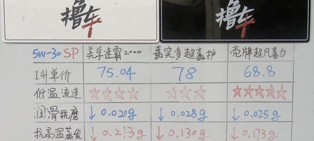高温蒸发最少的是嘉士多超嘉护,仅蒸发了0.13克。其次是壳牌超凡喜力,蒸发了0.173克。蒸发最多的是美孚速霸2000,蒸发了0.213克。