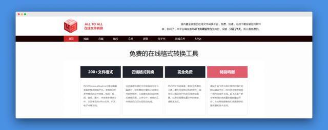 ALL2ALL是一个在线格式转换工具,它也许是目前全网最全面的格式转换工具了,支持200多种格式的文件转换,最重要的一点是这些工具全部免费使用。