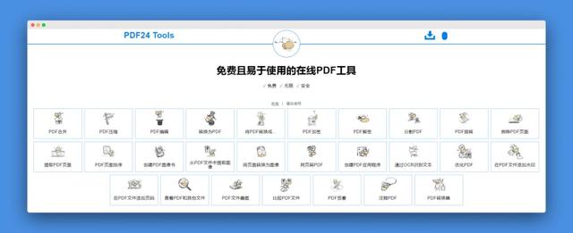 PDF24是一款免费且实用的在线工具,该网站有超过24种PDF相关的处理工具。