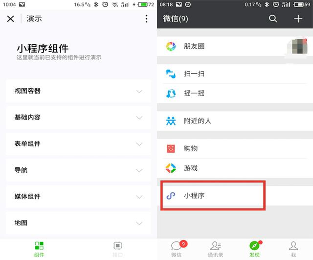 首先,微信版本要更新到最新版本,安卓版/ios最新的微信版本为6.5.3。紧接着在微信“发现”搜索栏搜索“小程序示例”,在搜索结果中找到黑底白色“倾斜的S”图案,点进去会出现“小程序组件”界面,不用管它直接退出来,这个时候,你会在微信—“发现”最下方出现“小程序”,点进去在最上方搜索栏搜索我们常用的应用就可以了,应用名必须精准不然会搜不出来。