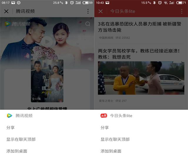 小程序初步体验。以“滴滴出行”为例,打开后“滴滴出行”小程序功能同手机APP版一致会提示获取地理位置等权限请求。点小程序右上角的三个点小菜单可把该小程序显示在微信聊天顶部、分享给好友以及添加到桌面。由于苹果对APP应用权限管控比较严格因此IOS下的微信小程序暂不支持添加到桌面。