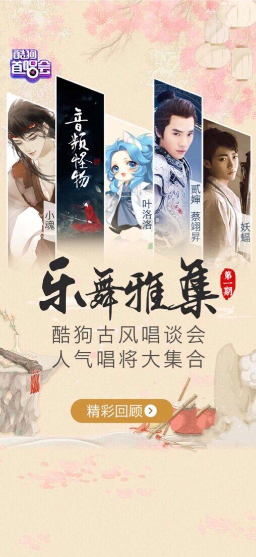 创新的节目形式,强大的平台资源下,直播内容的多元化和创意性成为节目运作的一大重要因素。除了流行歌曲、经典音乐,《酷狗首唱会》还覆盖了嘻哈、动漫等多元音乐类型。今年4月以来,“酷狗首唱会”推出“乐舞雅集 酷狗古风唱谈会”栏目。新老二次元古风歌手悉数亮相,通过真人或3D虚拟形象直播演唱,满足了二次元乐迷的期待,也进一步帮助古风歌手走向大众视野。通过VR技术实现的虚拟形象二次元专属直播形式吸引超过221万粉丝围观刷屏。