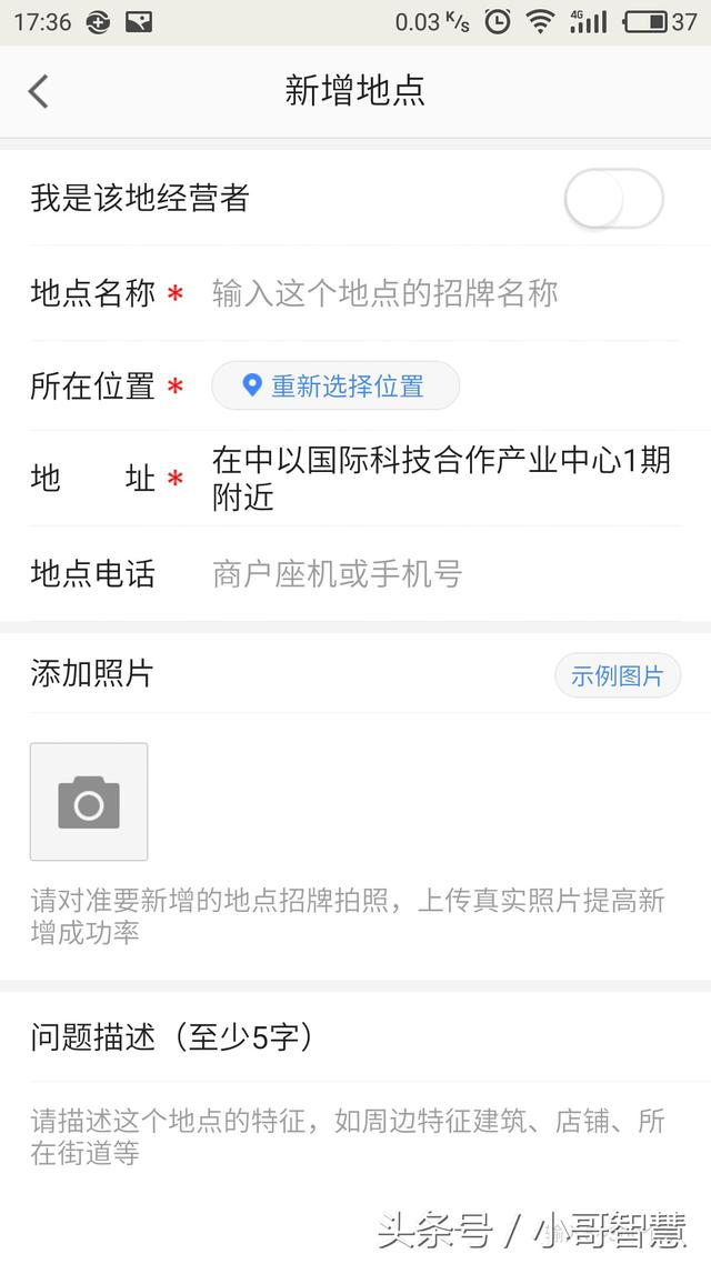 然后输入你想增加的地点,地址那里你也可以重新修改具体的地址,其他如果能拍张照是最好的,然后下面输入你的手机号码就行了,如果这个地点是真实有效的那高德应该会直接把这个地点添加上去,如果高德不确定这个地点的真实性,可能会给你打电话确认一下!