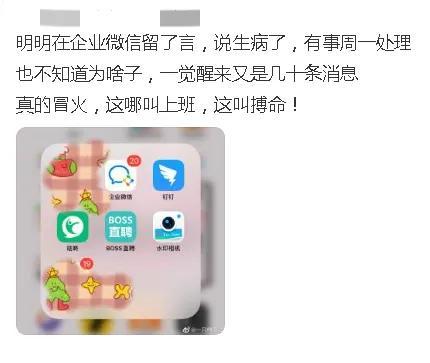 自从有了微信,之后各种微信群的建立,领导发现了新大陆,随时可以联系我们,早、中、晚、周末、国假,随时随刻!随时随地可以回复工作内容,工作情况,联系客户。。。。。。