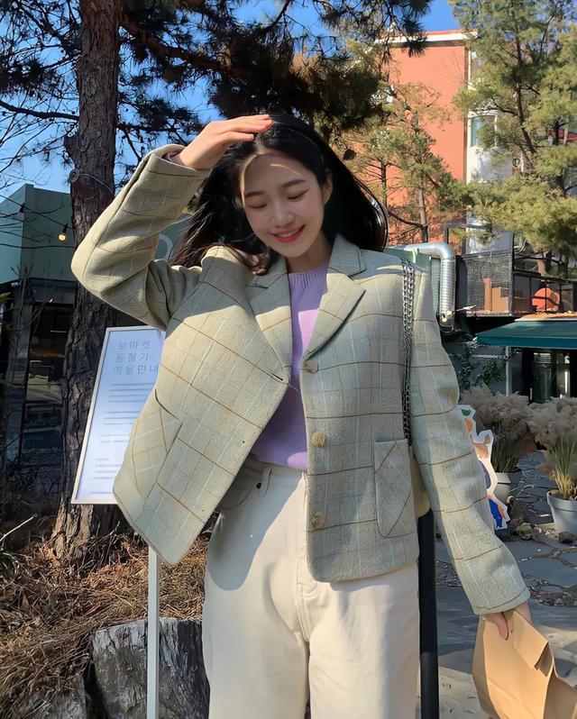 发现了没,欧尼的彩色西装都是饱和度偏低或者偏灰调的,更显高级气质。