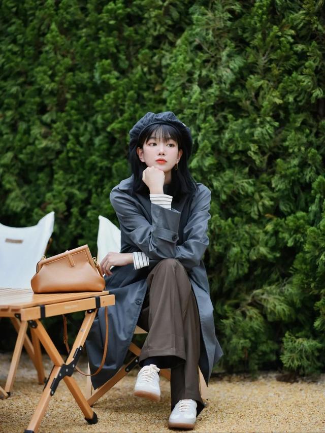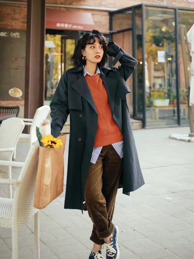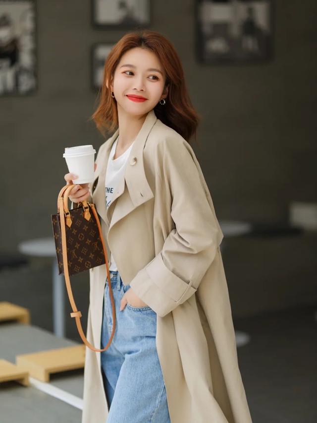 卡其色/棕色风衣经典、永不过时,中性的颜色和我们衣柜里大部分颜色都配,利用率也更高。