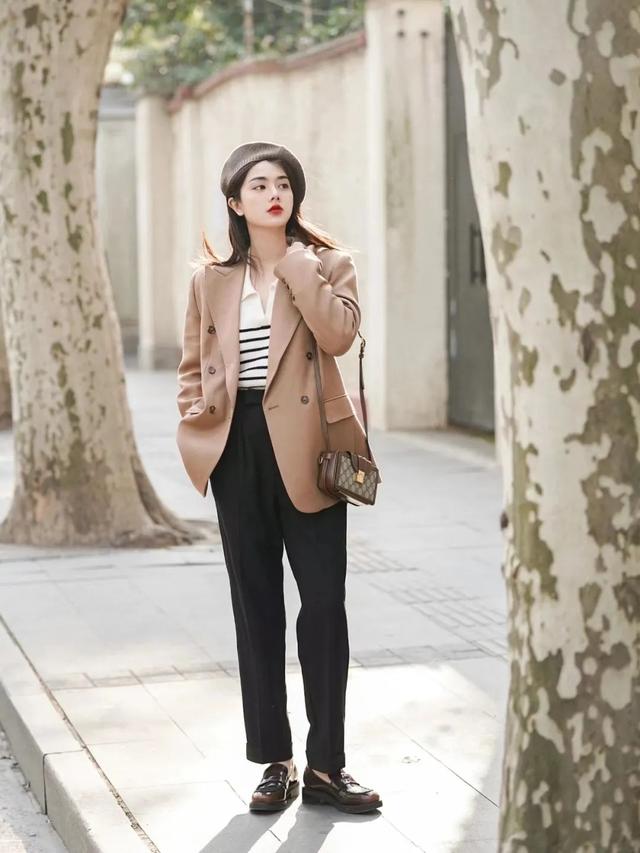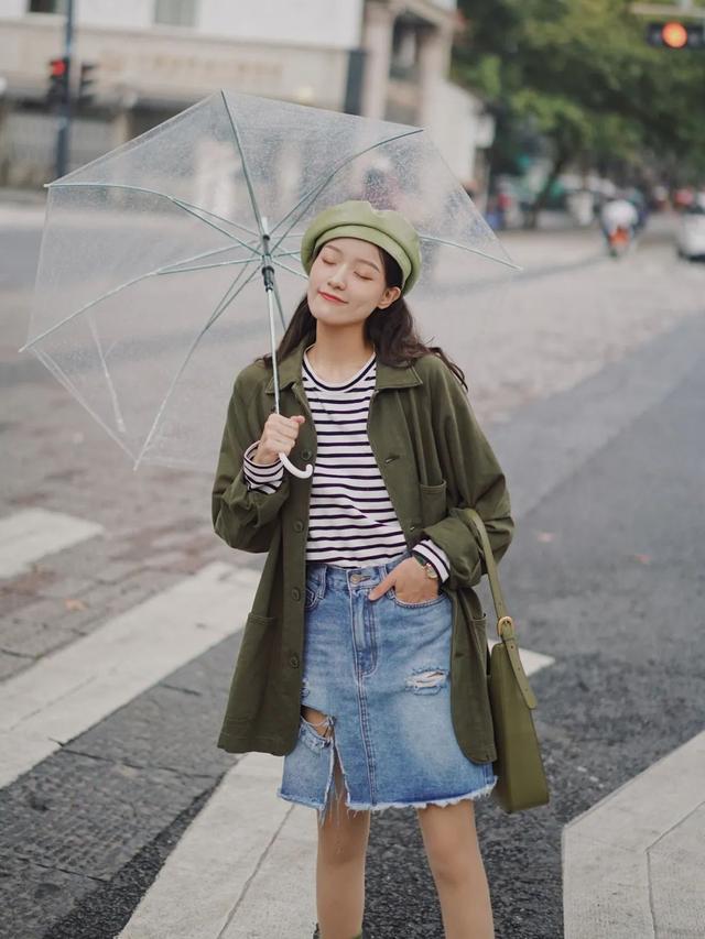 喜欢简约风格,可以直接叠穿条纹打底衫,你就是气质小姐姐