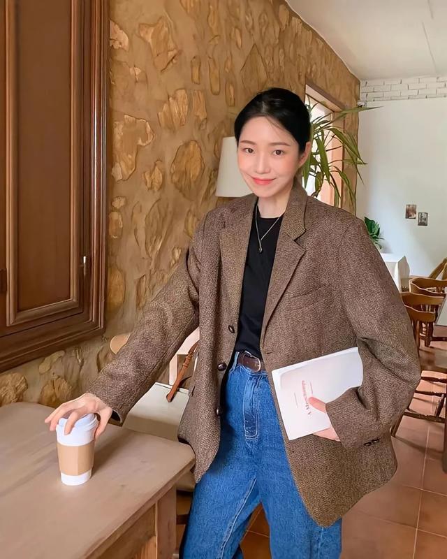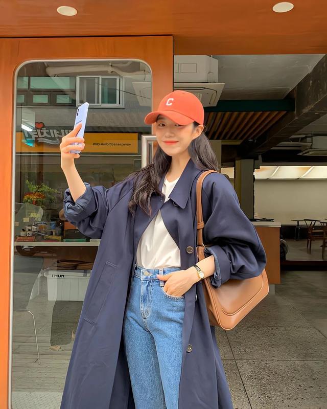 中长款外套满满的帅气值,也是欧尼春天常穿的。